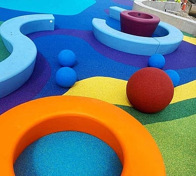 Fun, vibrant, and sustainable safety surfacing for playgrounds, sports courts, splash pads and walkways.